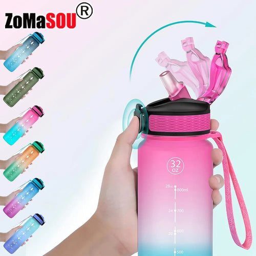 1L Sports Bottle with Time Scale Gradient Color Drinking Bottle Leakproof Portable Outdoor Travel Gym Fitness Jugs For Office